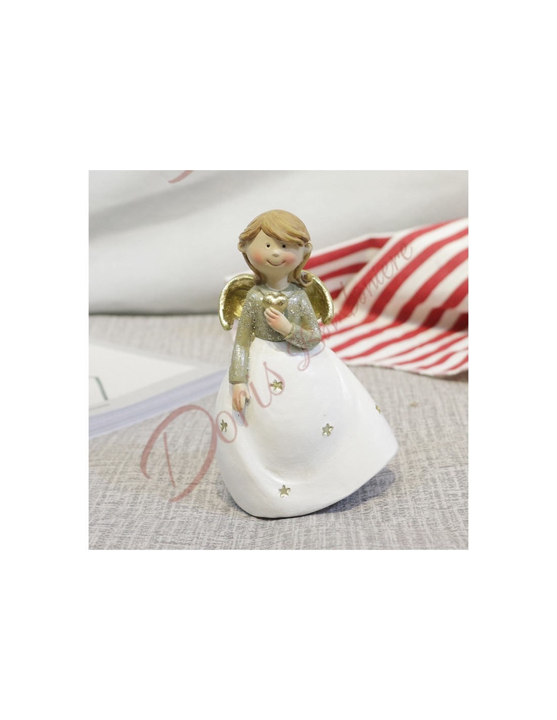 Engel aus silbernem Harz mit weißem Kleid und Taube h 12 cm mit Box