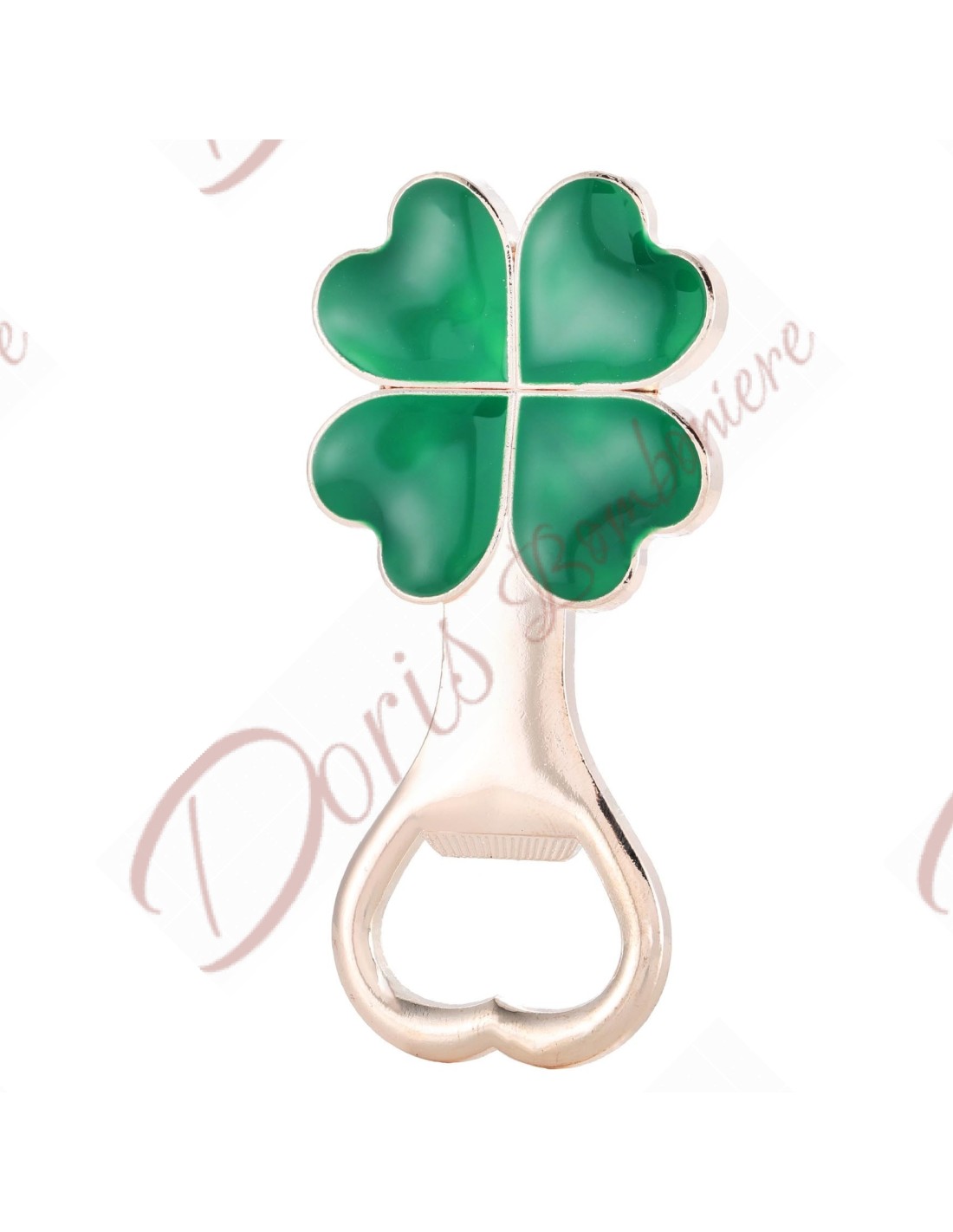 Grüner vierblättriger Kleeblatt-Flaschenöffner aus Metall