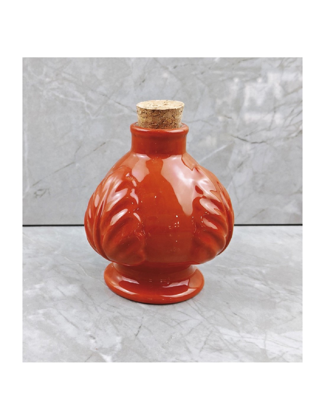 Originale apulische Pumo-Ölflasche aus orange-roter Keramik mit 120 ml Fassungsvermögen und Naturkorkverschluss. Perfekt als preiswertes und praktisches Gastgeschenk für Hochzeiten, Erstkommunionen, Konfirmationen und Jubiläen. Die warme, leuchtende Farbe unterstreicht das Design des Pumo, ein Symbol für Wohlstand und Glück in Apulien. Füllen Sie die Flasche mit nativem Olivenöl extra, Likören oder traditionellen Gewürzen – ein nützliches Andenken, das Ihre Gäste immer wieder gerne genießen.