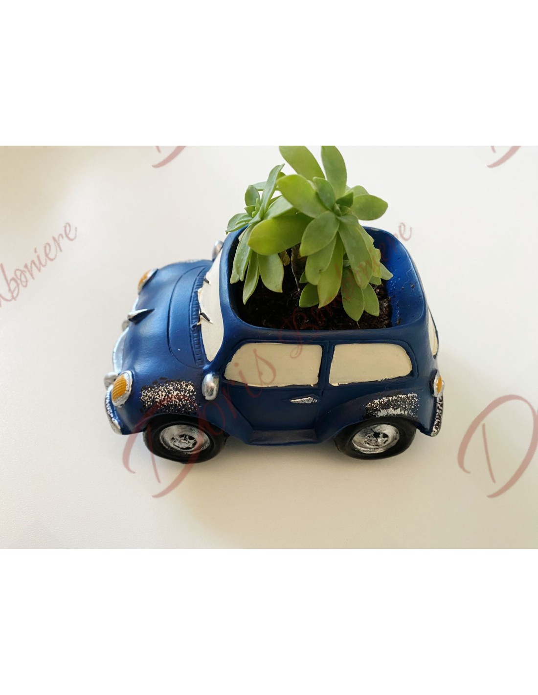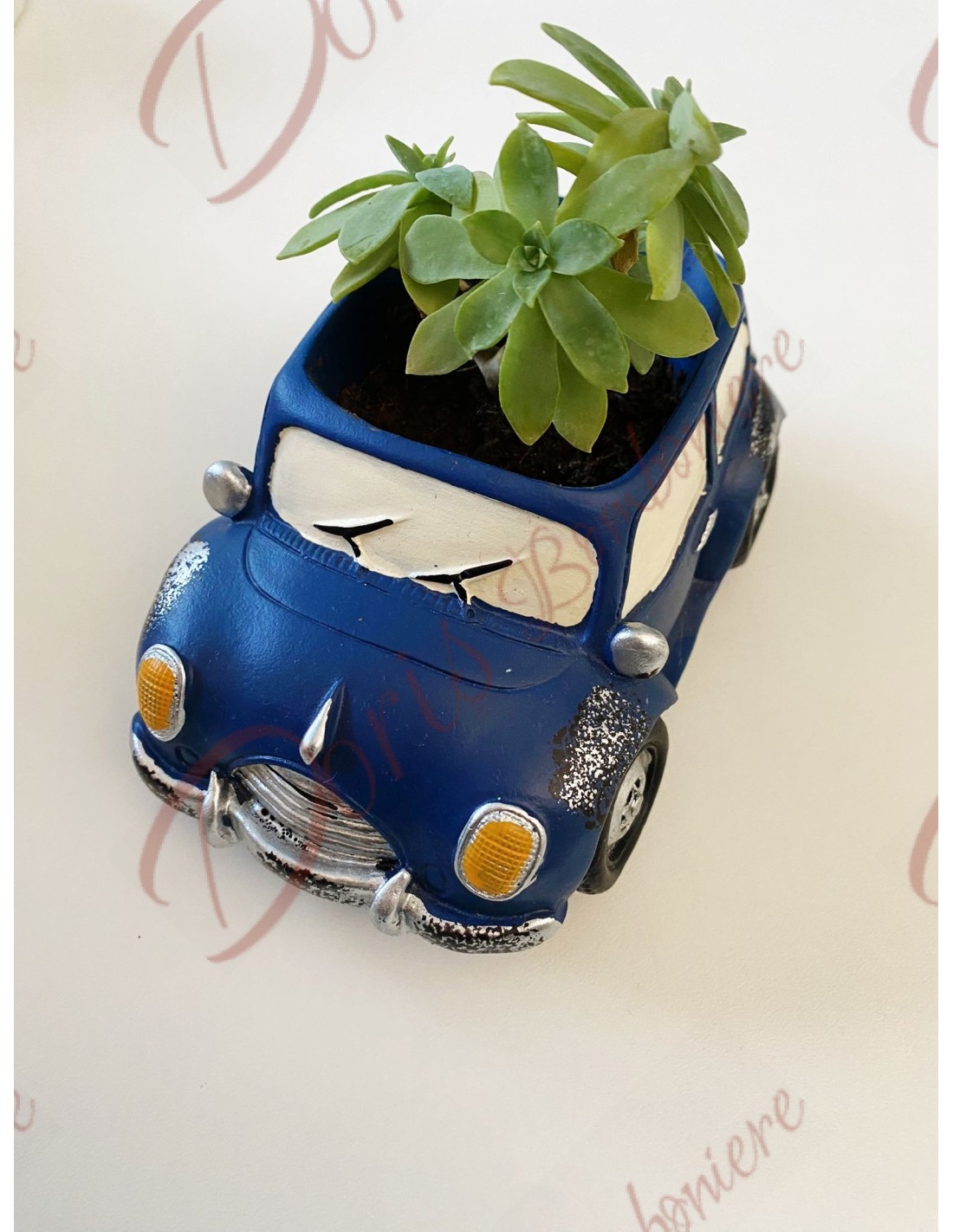 Der mit Sorgfalt und Liebe zum Detail gefertigte Gastgeschenk verfügt über ein leuchtend blaues Auto, das als Topf für eine Pflanze dient. Das realistische Design der Maschine mit all ihren Details ist eine wahre Augenweide und wird Ihre Gäste mit Sicherheit verzaubern.