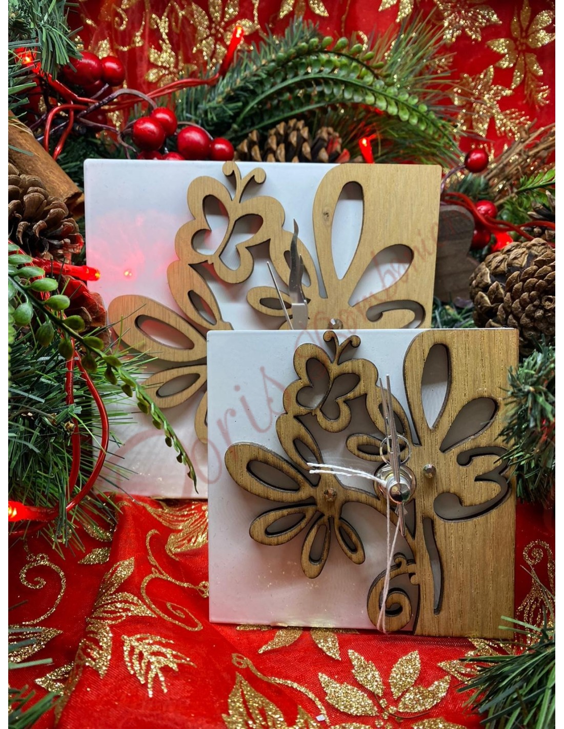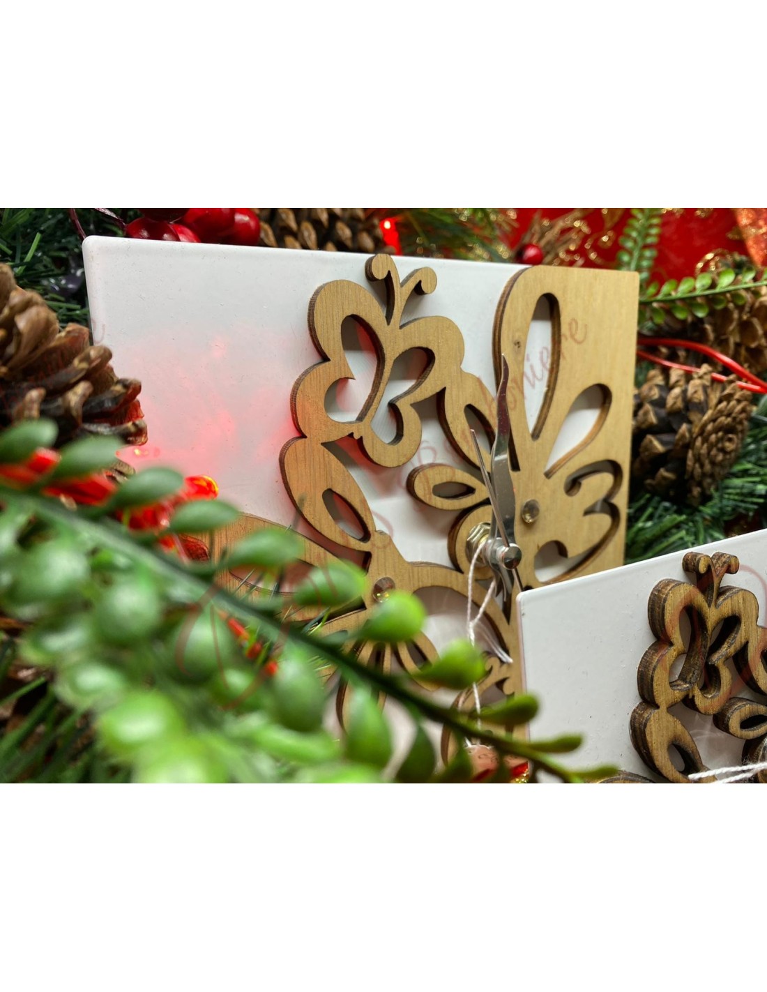 Uhr aus Metall und Holz mit Blume und Schmetterling kleine Größe