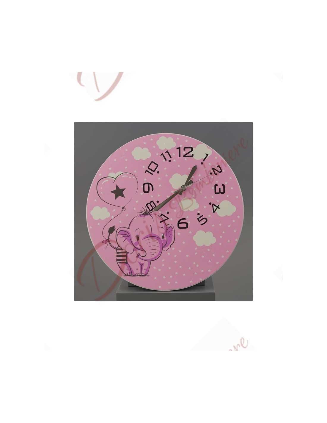 Gift furniture wall clock for pink girl's bedroom with elephant diameter 40 cm