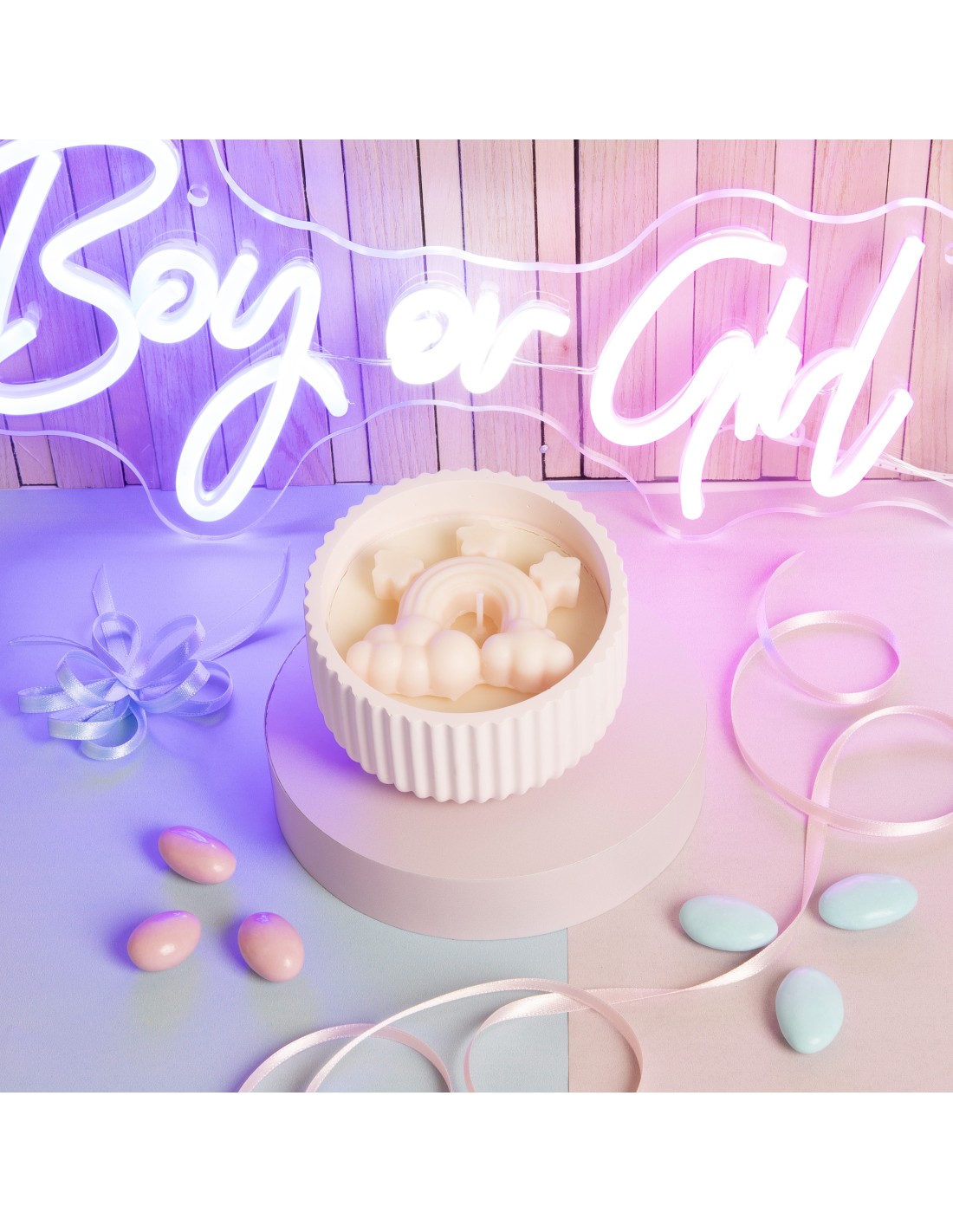 The product "Girl's baptism favors candle with pink and rainbow wax 10.5x5.5 with gift box" is a special candle suitable for celebrating the baptism or birth of a little girl. The candle is made with pink wax and features a beautiful rainbow. The dimensions of the candle are 10.5x5.5 cm. Plus, it comes with a gift box, making it a great gift idea for a baby girl's christening.