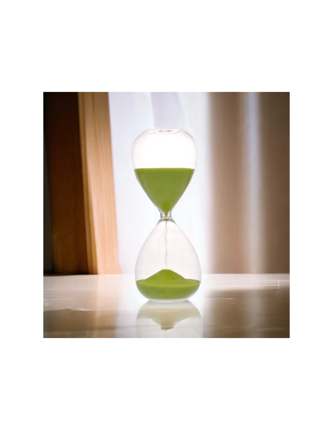 Green Sand Hourglass Favors is a high quality glass product with a duration of 30 minutes and a height of 20 cm. This item is a great choice for wedding gifts or special occasions. The green sand inside the hourglass creates a visually pleasing effect as time slowly passes. With its elegant design and long life, this hourglass is a perfect decorative element for any setting.