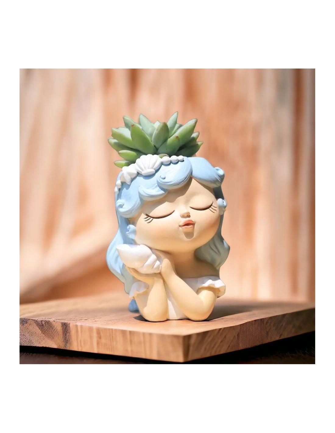 Decorative vase favor that can be given as a souvenir or as a sign of gratitude during events such as births, baptisms, communions or confirmations. This specific wedding favor is a vase for a succulent plant, made of hand-painted resin, in the shape of a half-bust of a sea-themed little girl, decorated with shells. The dimensions of the vase are 11x8 cm. This object can be used as a decorative element for the home or as an original and nice gift for lovers of the sea and succulent plants. ONLY WITH THE PURCHASE OF THE PACKAGING SERVICE IS THE SUCCULENT PLANT SUPPLIED WHICH MAY BE DIFFERENT FROM THE ONE IN THE IMAGE.