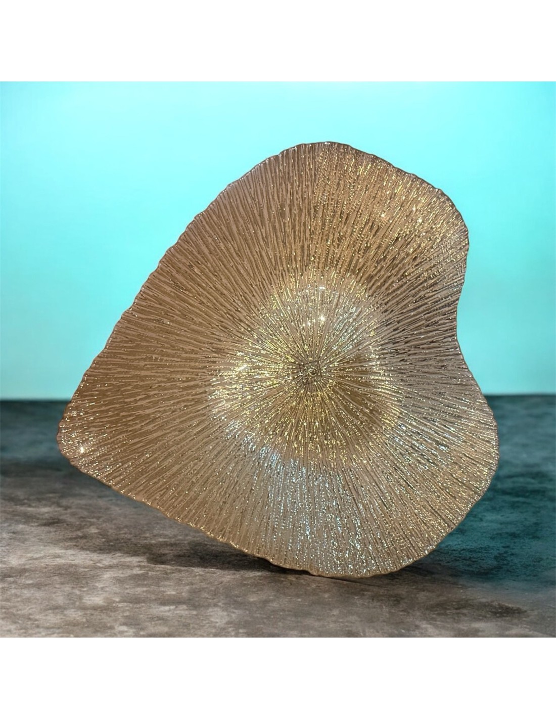 Stunning gold centerpiece with a soft, irregular shape, measuring 40x40 cm, crafted with a luminous texture that creates precious and refined reflections. Perfect as a decorative bowl, a trinket tray, or a decorative piece for the living room, entryway, and modern tables.