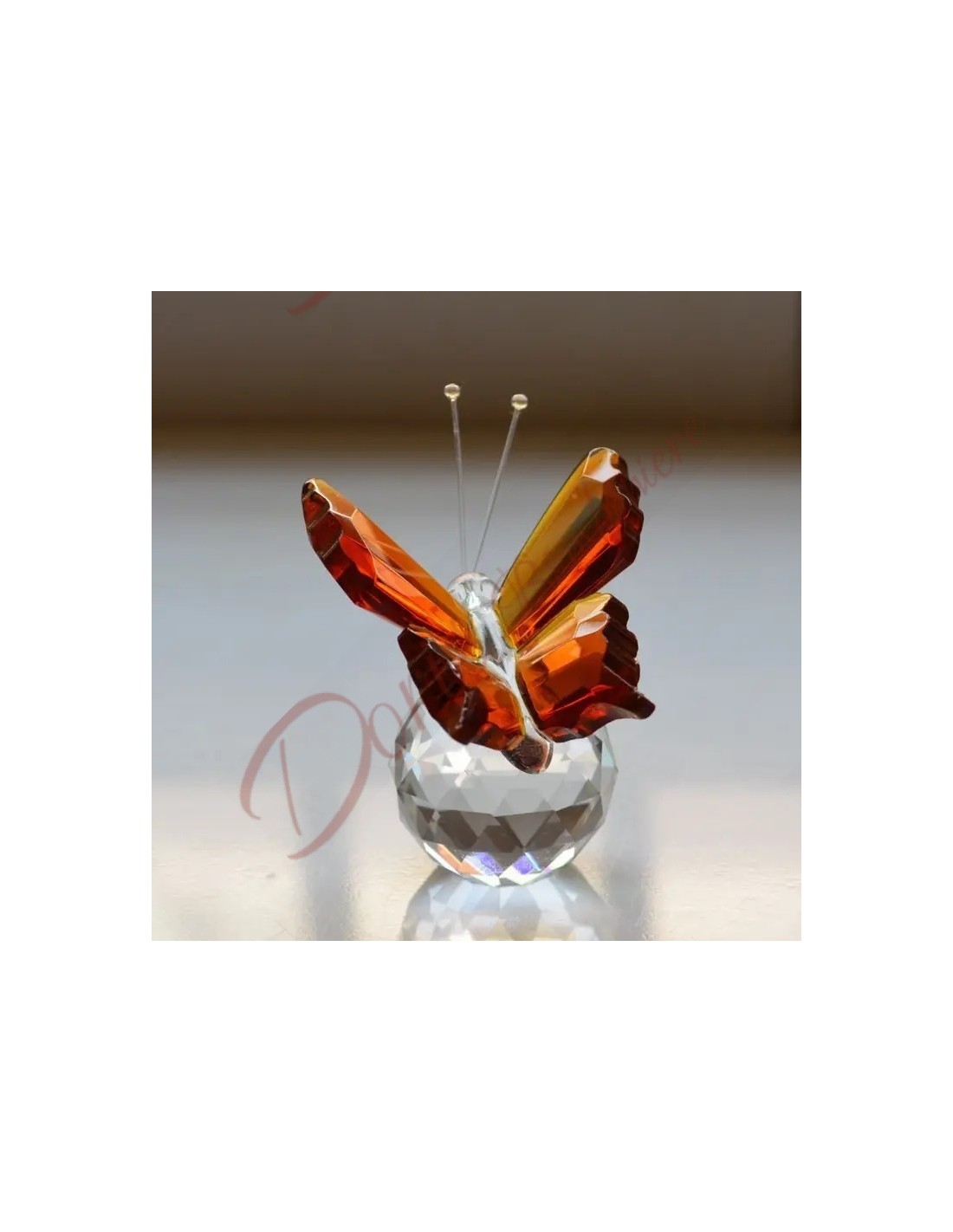 Crystal butterfly favor on amber-orange sphere 6x7 cm