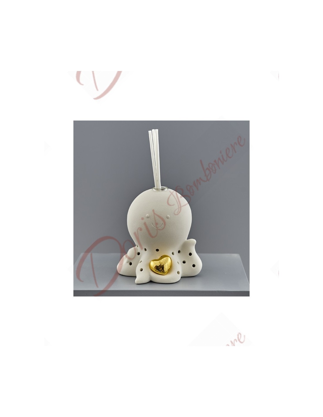 Useful favors air freshener with led cute octopus octopus in white porcelain with gold heart