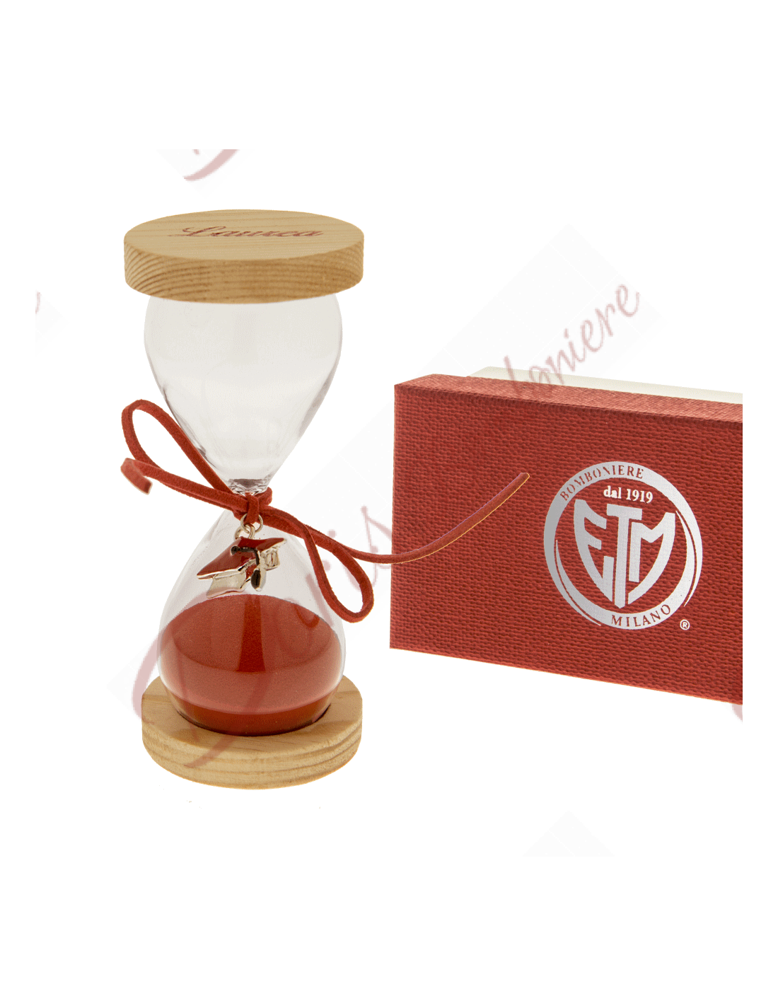 Favors Hourglass Graduation in glass with red powder sand wooden base 12.5 cm gift box