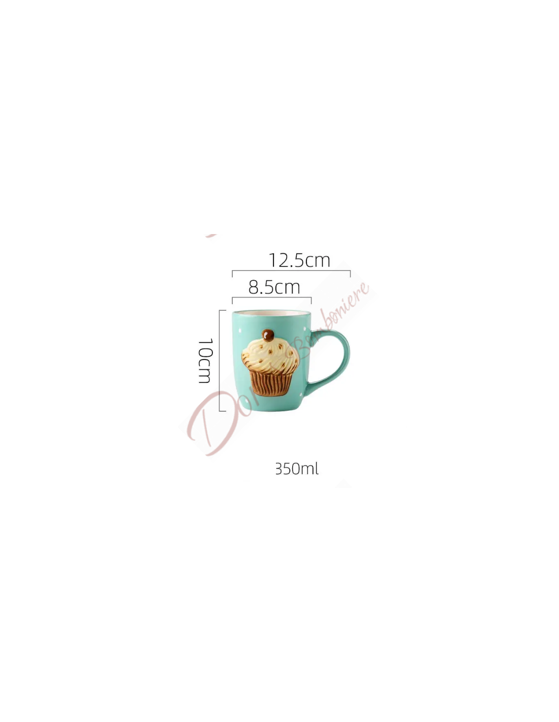 Buy our exclusive favour: mug with cupcake. With a height of 12.5cm and a width of 8.5cm, this delightful wedding favor is perfect for any special occasion. With a capacity of 350ml, you can enjoy your favorite beverage while admiring this adorable design. Made from high-quality materials, this cupcake mug will make an unforgettable gift for your loved ones. Find out more on our website and order today!