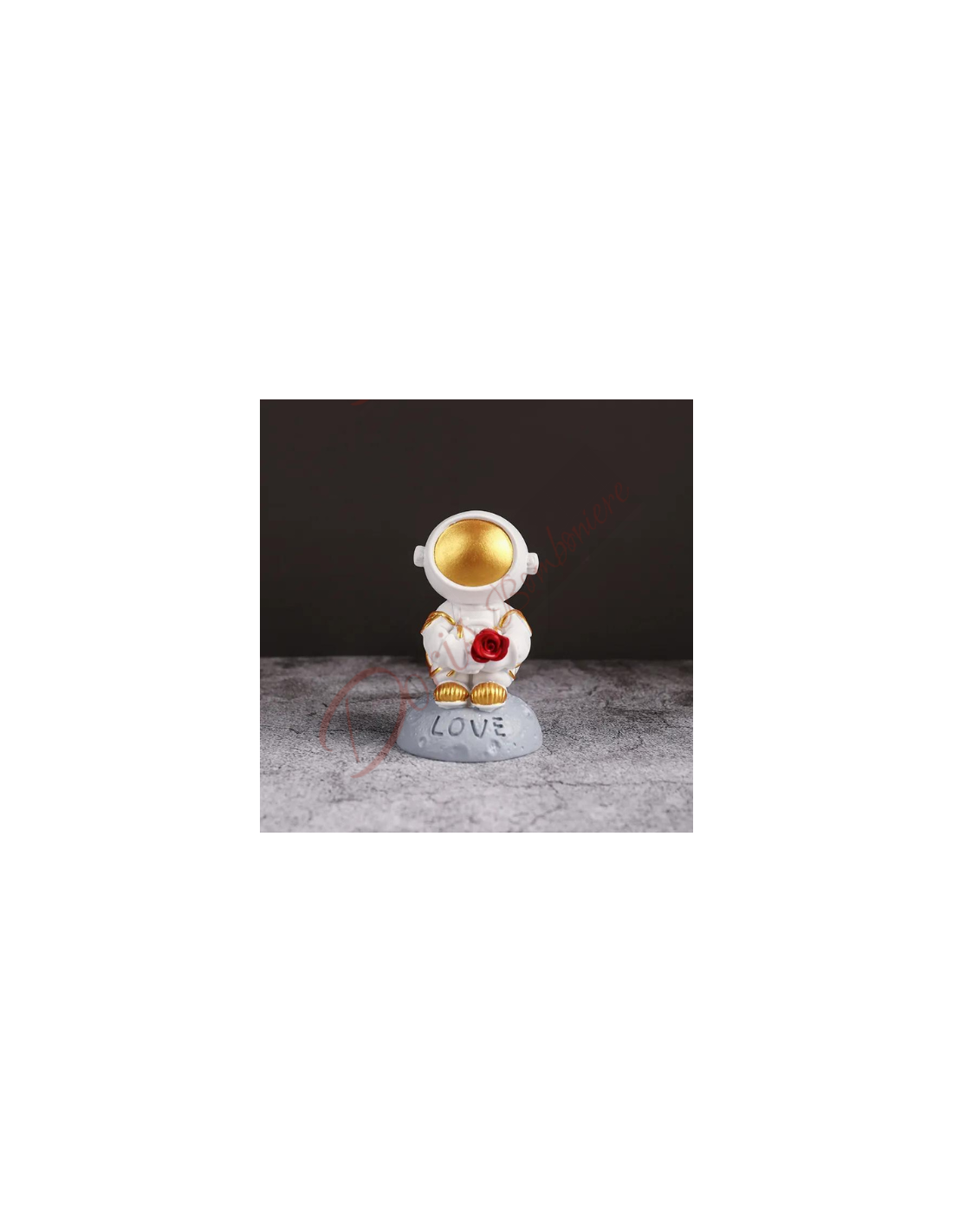 Discover the ideal astronaut themed favor for children for communion, baptism or confirmation! This unique wedding favor features an adorable little boy sitting on the moon, with the words "Love" and a romantic touch: he is holding a beautiful red rose in his hands. Carefully crafted in resin and hand-painted, this high-quality favor is designed specifically for a boy. Its compact dimensions of 5x8 cm make it perfect for giving as a gift and keeping as a precious souvenir. Add a touch of space charm and love to your special event with this astronaut themed wedding favor. Buy now and create an unforgettable moment for your little astronaut!