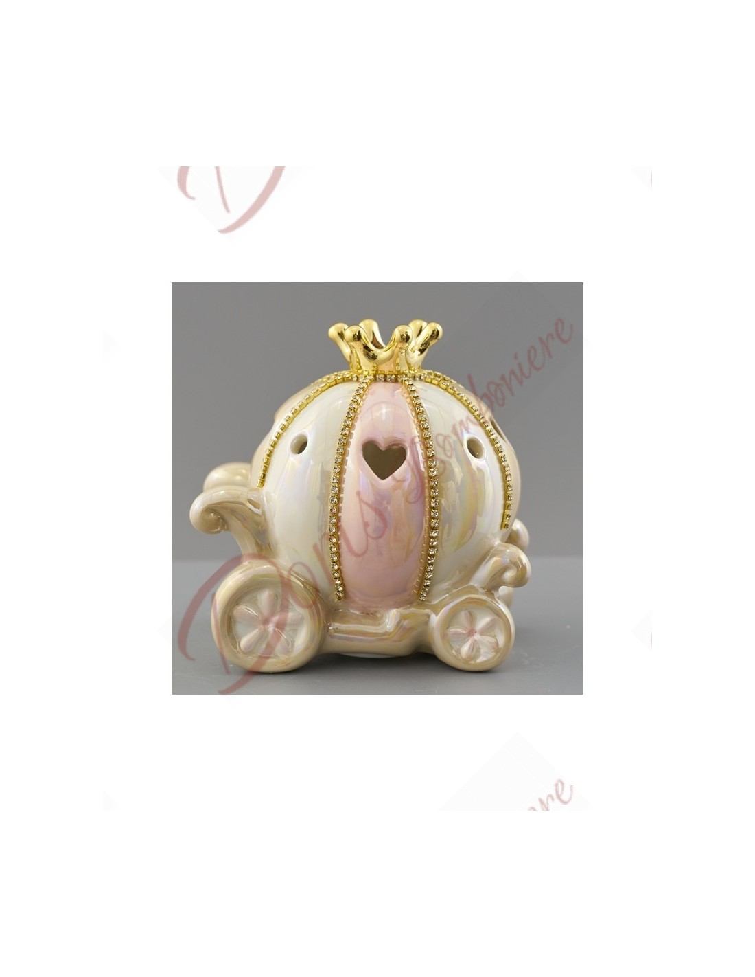 Carriage favors with pink led with rhinestones - box included 9.7x7x9.8 cm