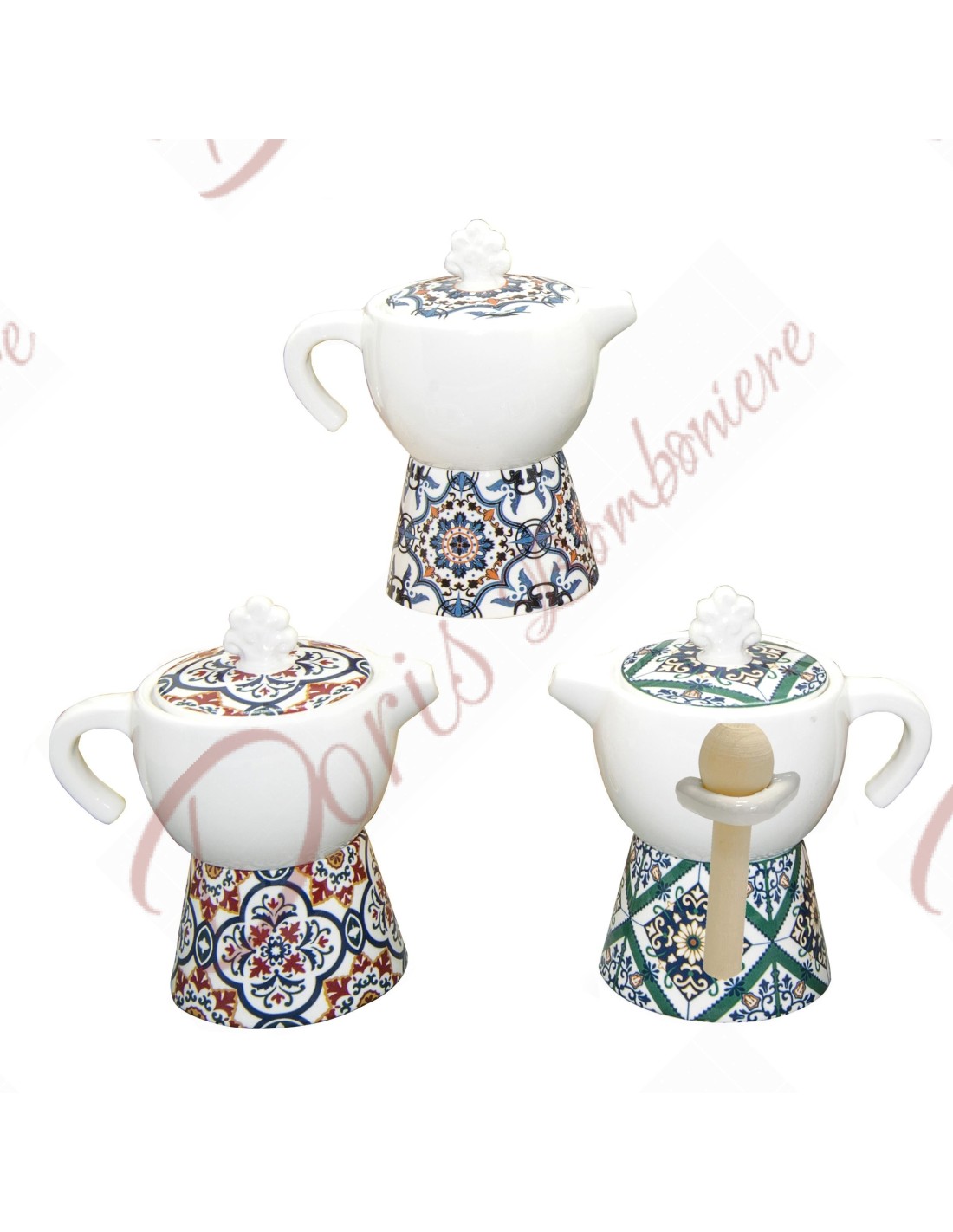 Ceramic sugar bowl with moka-shaped spoon 12 cm h