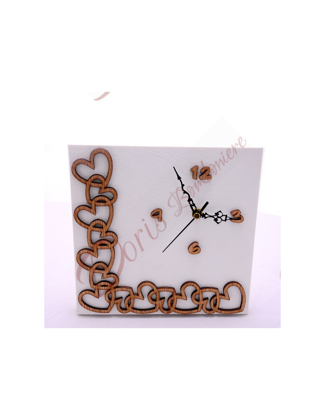 LINEA AGAPANTO SQUARE CLOCK W / CHAIN HEARTS IN WOOD 20x20