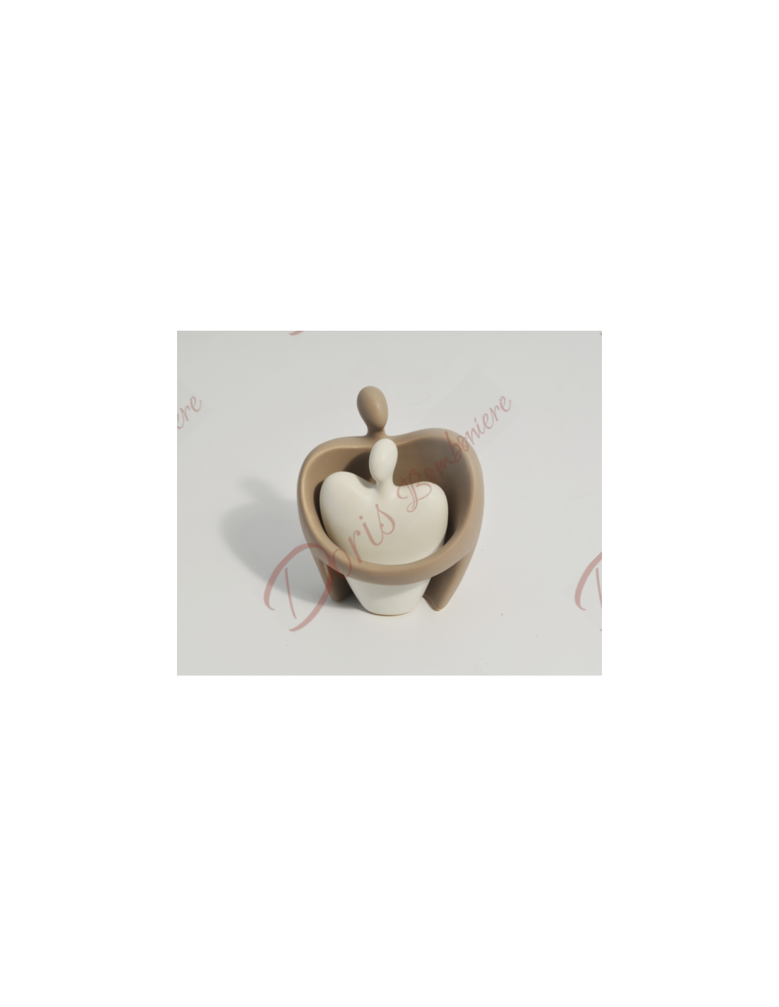 Two-tone porcelain embrace, h 9.5 x 9 x 6.5 cm, complete with fabric candy box.