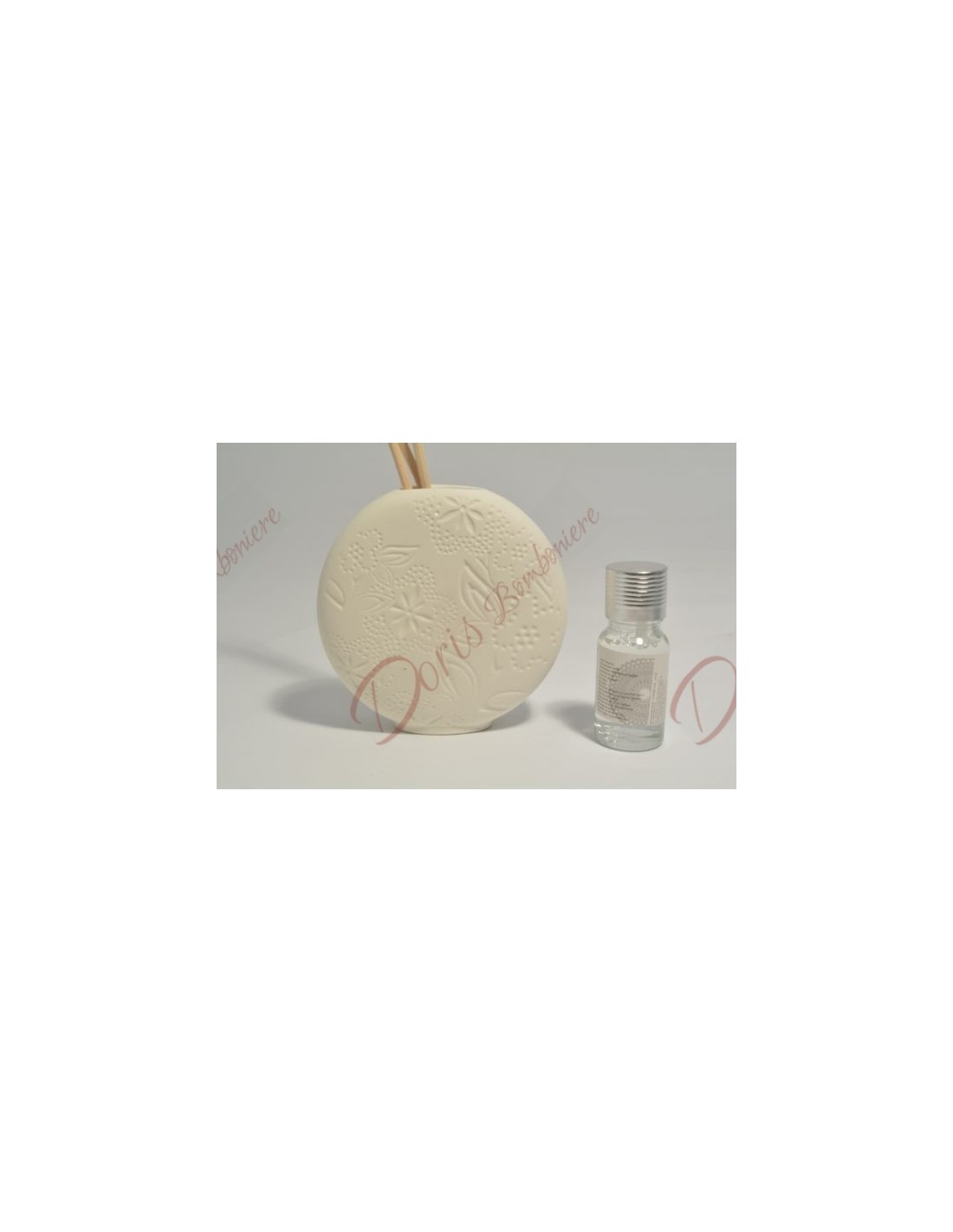Fragrance vase in white biscuit porcelain with floral decoration complete with essence kit