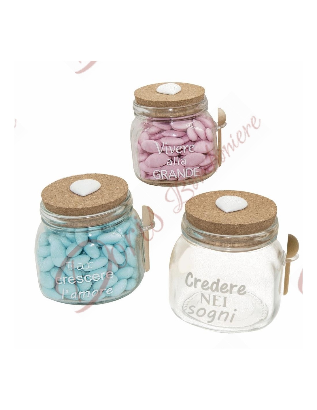 Glass jar with wooden cap - model dreaming with assorted phrases 13 cm height candy box holder