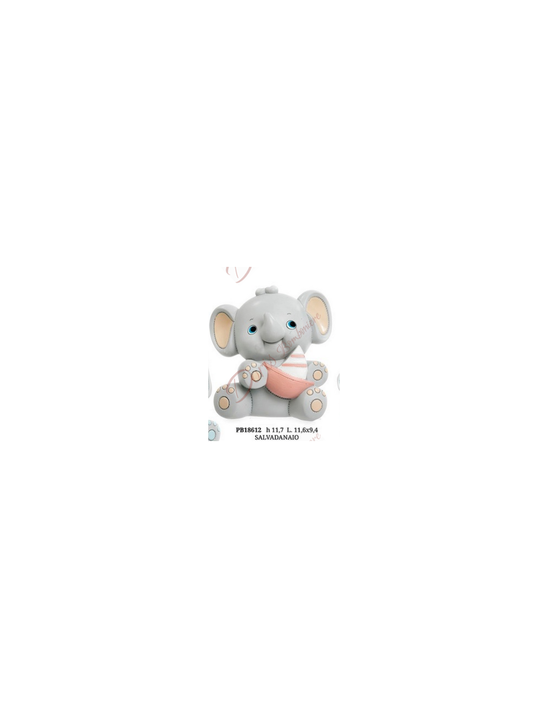 Tirelire faveur bébé éléphant éléphant en résine grise détails roses 11,7 cm avec voilier