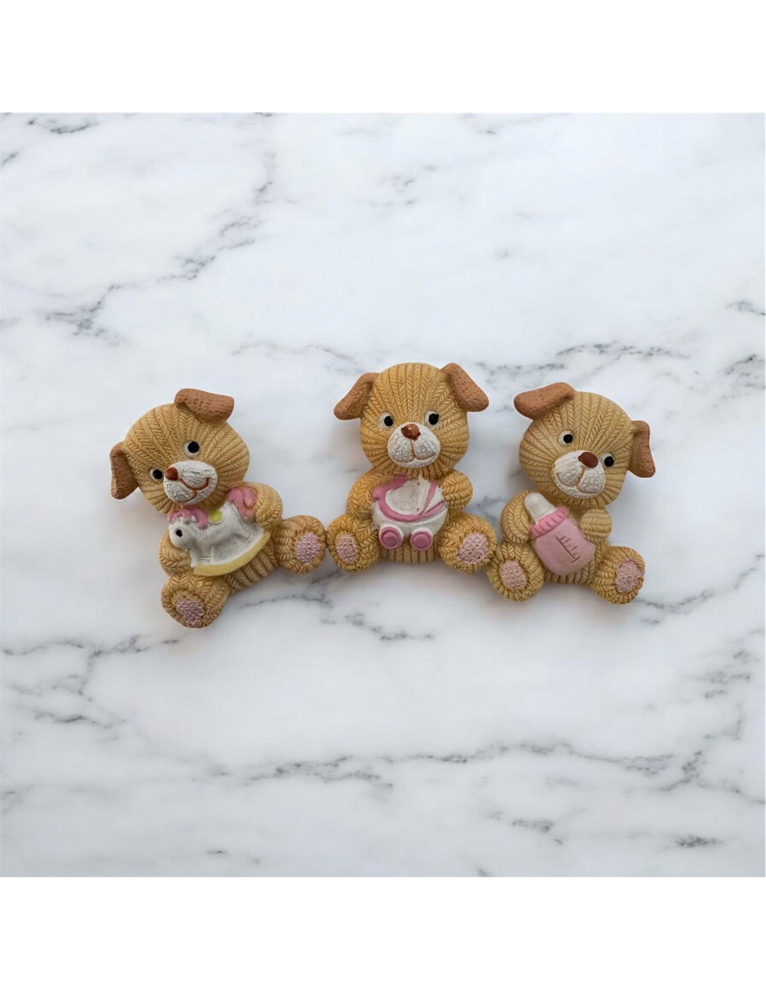 Aimant en forme de chien en laine très doux, parfait comme cadeau de naissance ou de baptême pour une petite fille. Chaque chiot tient un objet différent. Modèles assortis, mesure environ 5,4 cm. Idéal pour les sacs à confettis.