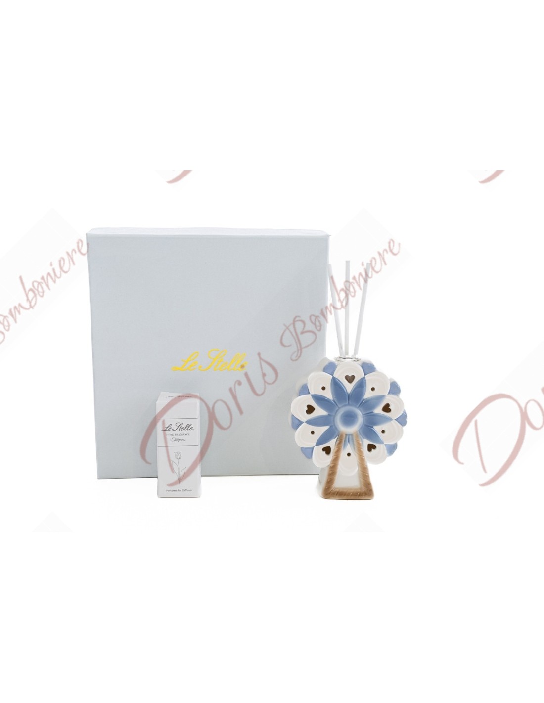 Baptême bébé faveurs utile grande roue parfumeur 8x4x10 cm bleu clair 55312