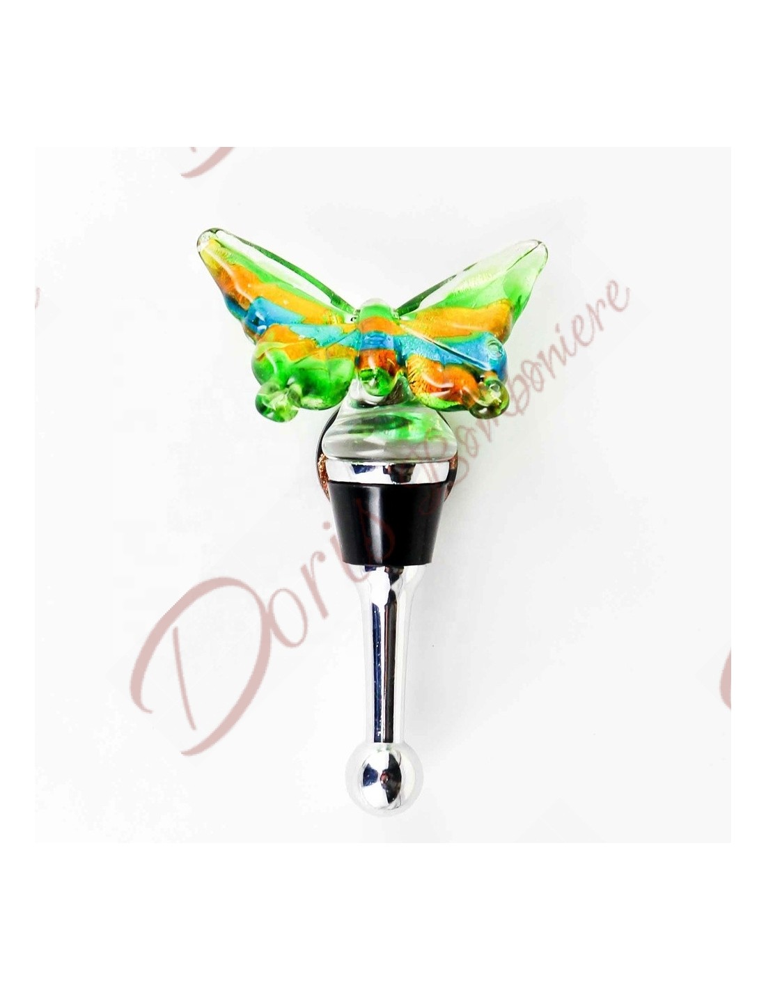 Bomboniera farfalla su tappo per bottiglia in vetro murano verde