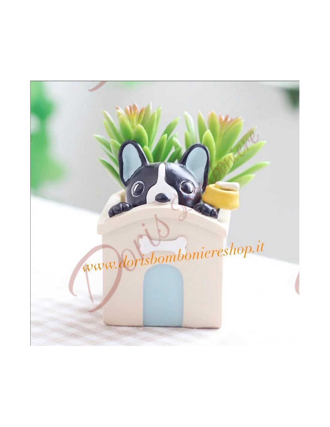 Bomboniere vaso pianta con cane in resina ideale per battesimo comunione o cresima