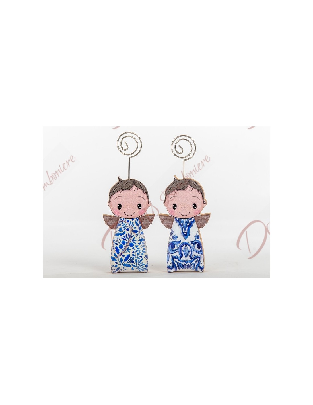 Bomboniera bimbo angelo monoclip in legno azzurro cm 10 cm prodotto solidale