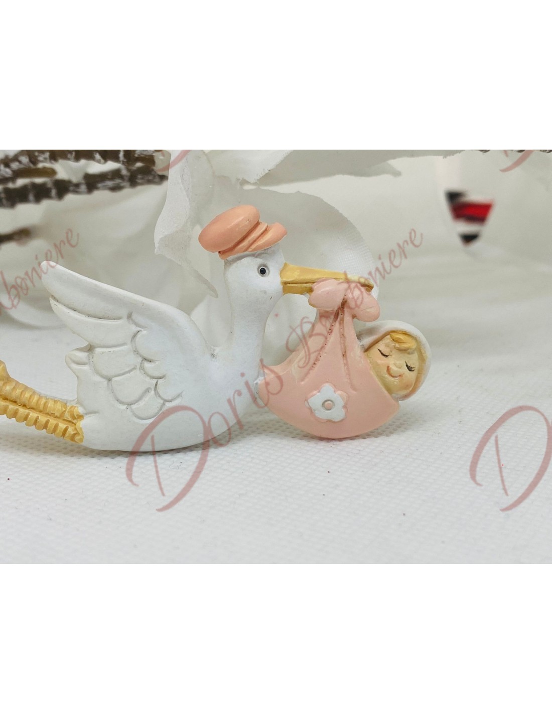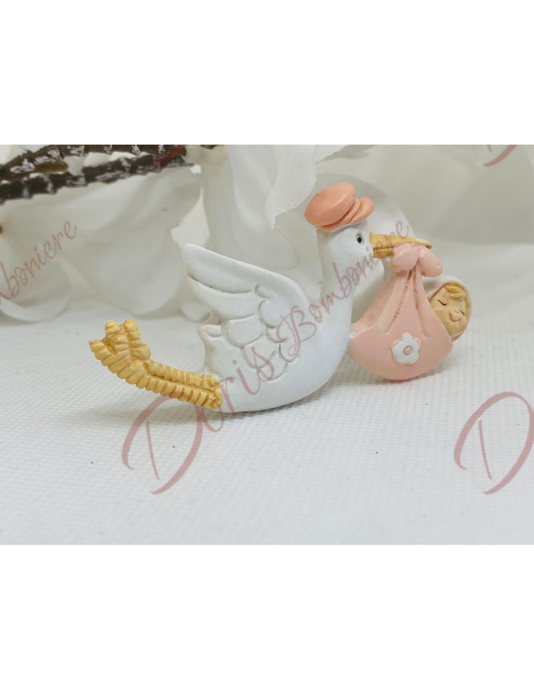 Magnete cicogna con sacco rosa cm 7.8 in resina