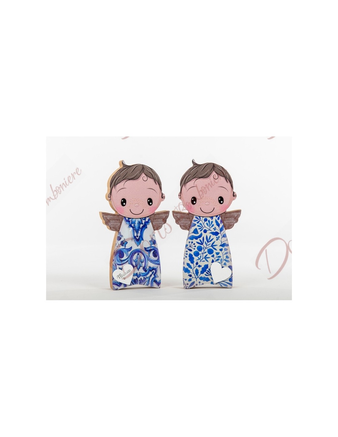 Bomboniere fiore stabilizzato rosa colore blu con base in cristallo 11 petali H.9X9X6CM