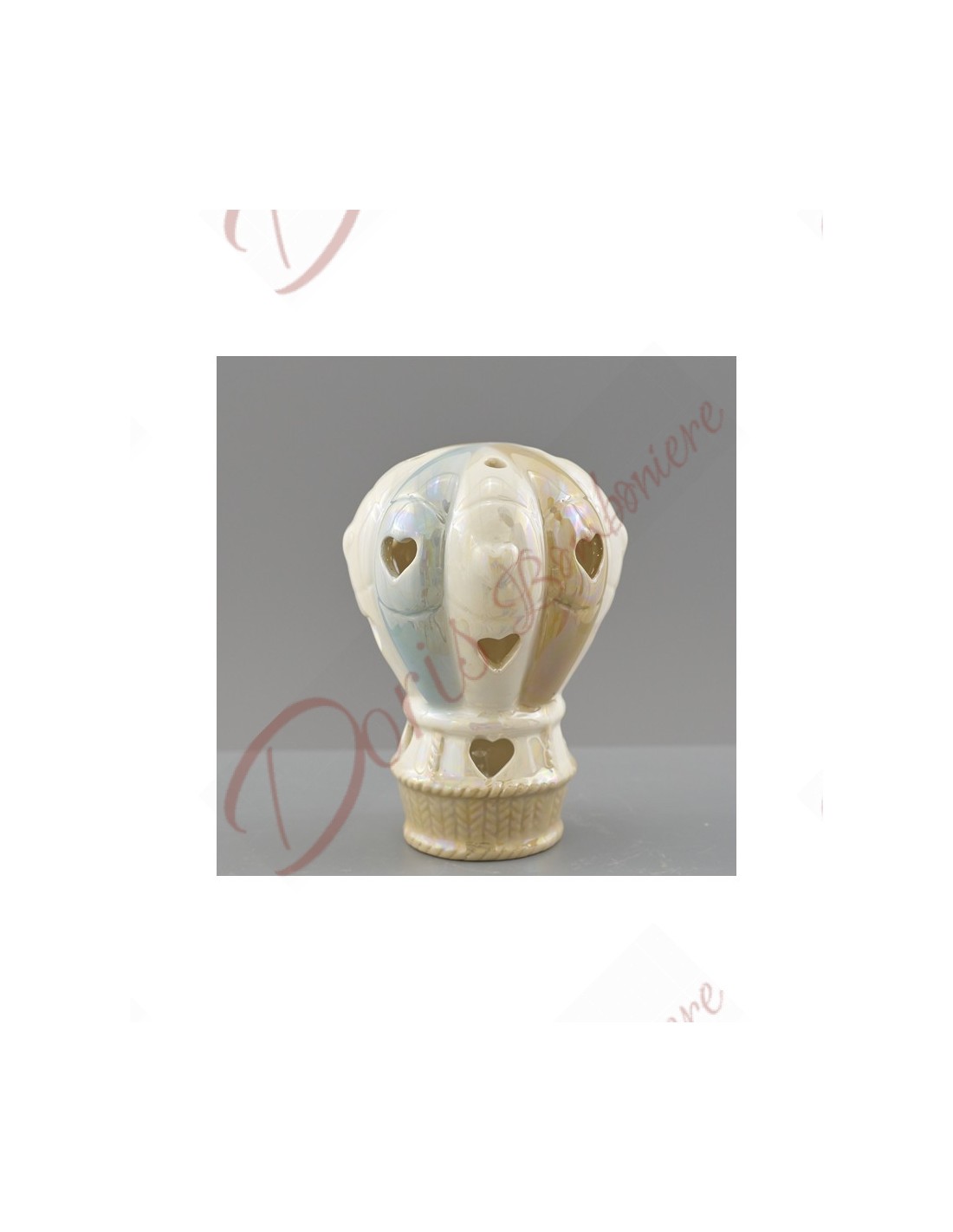 Bomboniera battesimo bimbo mongolfiera ceramica con luce led 7.4X7.4X11.2 CM