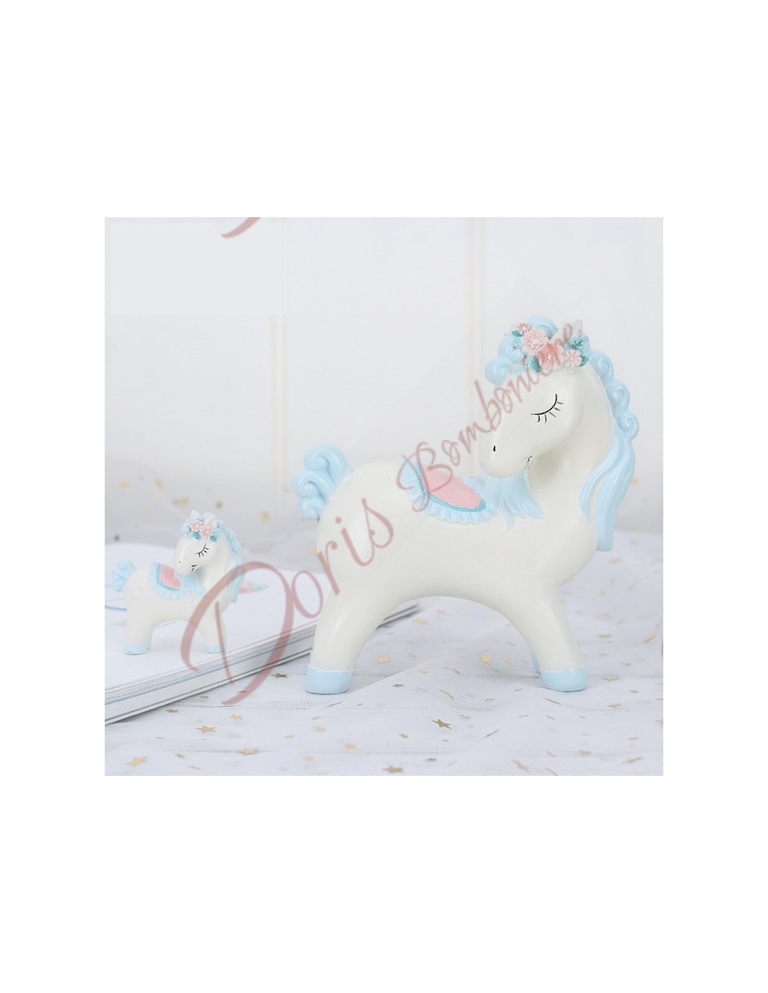 Bomboniera cavallo con dettagli azzurri per bambino 14.5 cm battesimo comunione bimbo