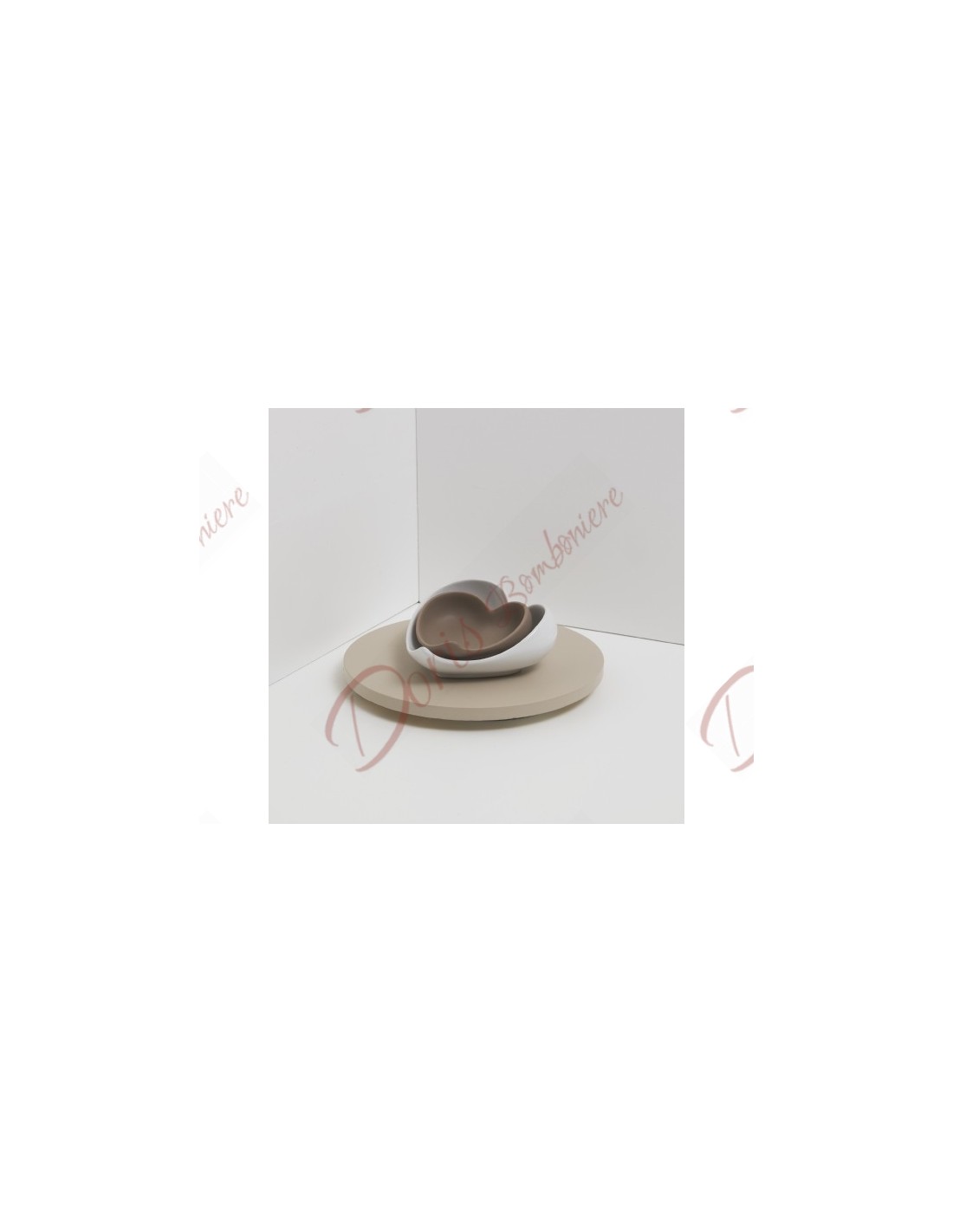 Bomboniera per matrimonio utile SVUOTATASCHE con 2 cuori marrone e bianco