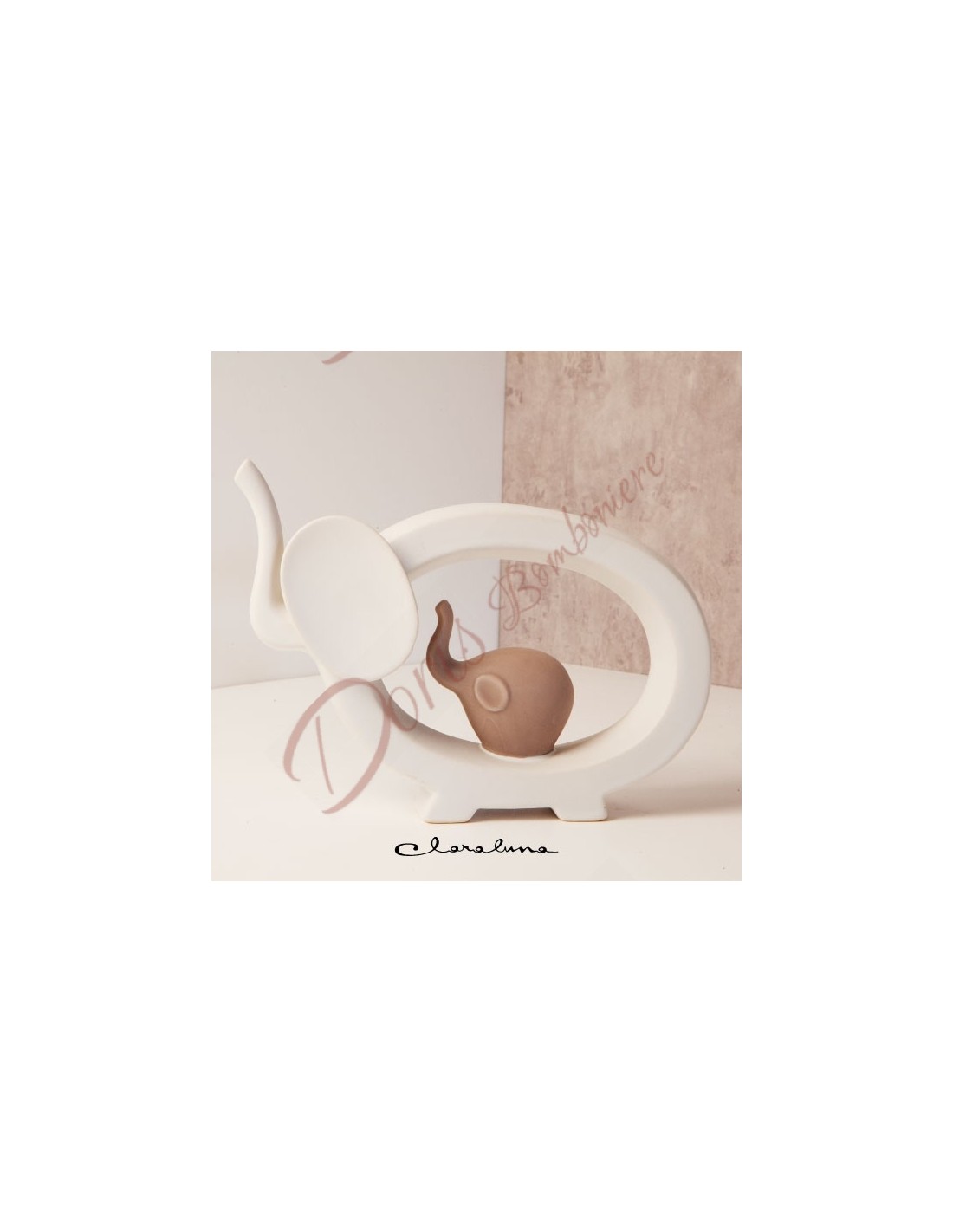 Bomboniere nuova collezione Claraluna 2023 coppia elefante bicolore bianco tortora 23x17x6cm
