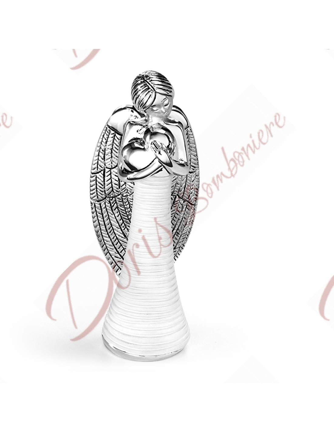 Angelo in resina argentata con abito bianco e Cuore h 12 cm con scatola