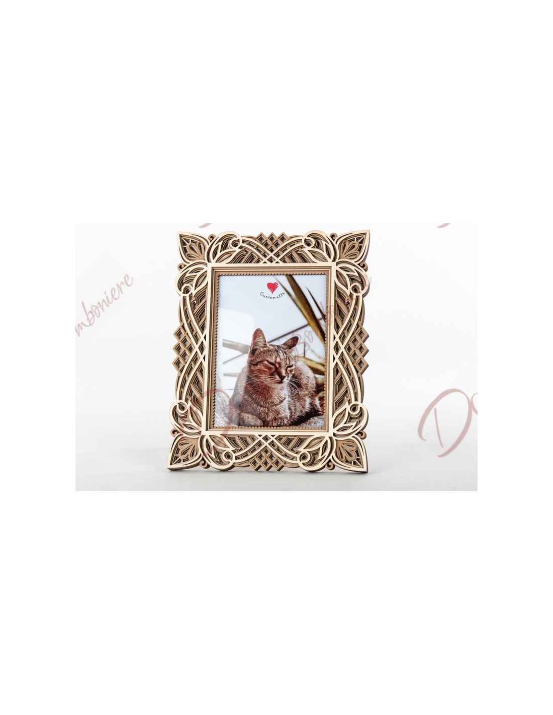 Bomboniera regalo cornice in legno lavorazione laser 6 strati solidale cuorematto 15x20 cm mis int