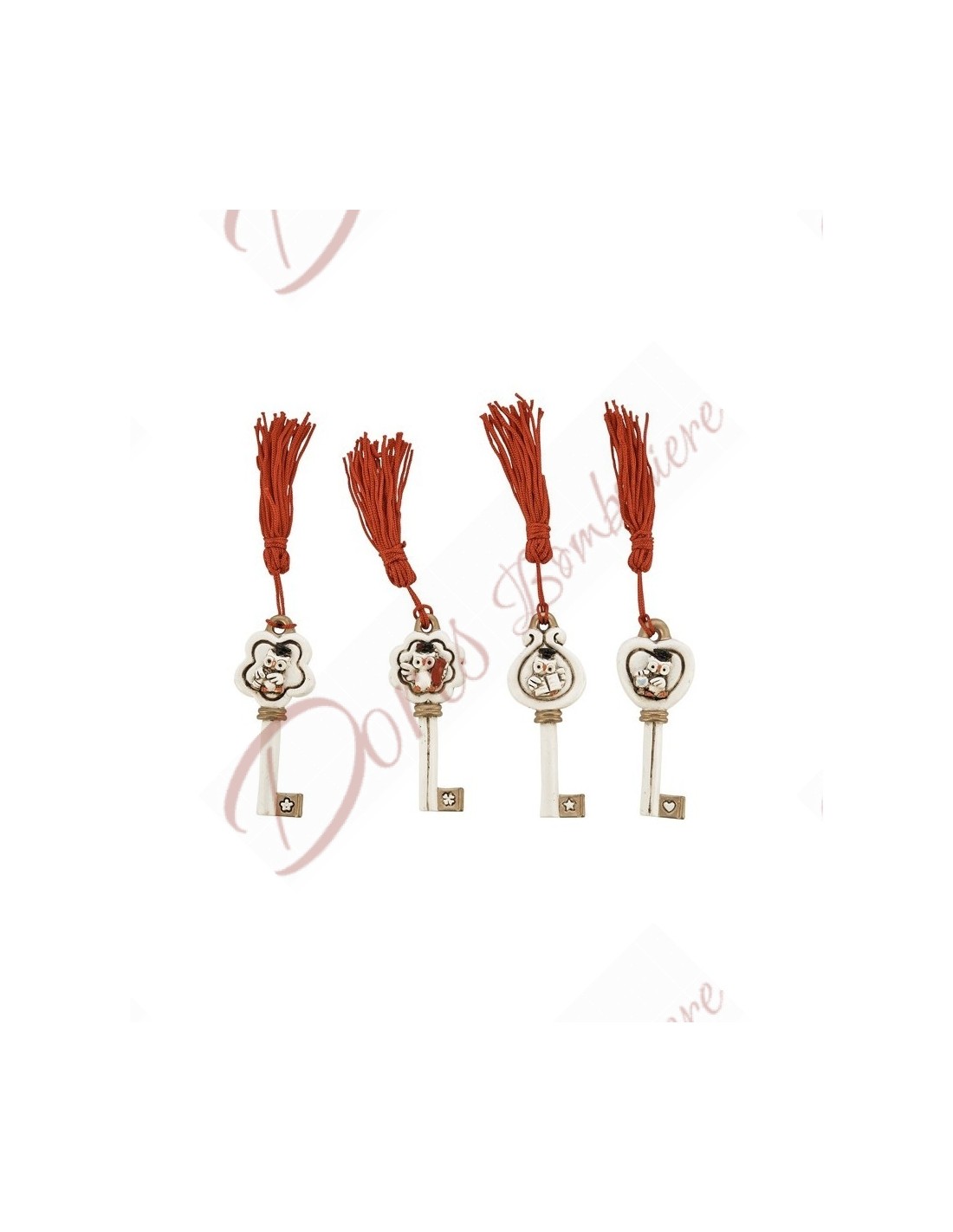 Chive porta fotuna con gufetto Bomboniera Laurea da appendere 4 mod. assortiti cm 7