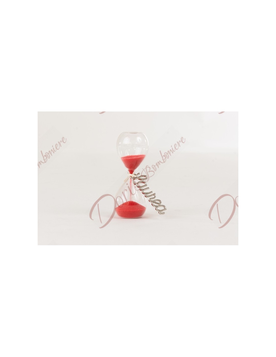 Bomboniera clessidra con sabbia rossa per laurea altezza 8 cm