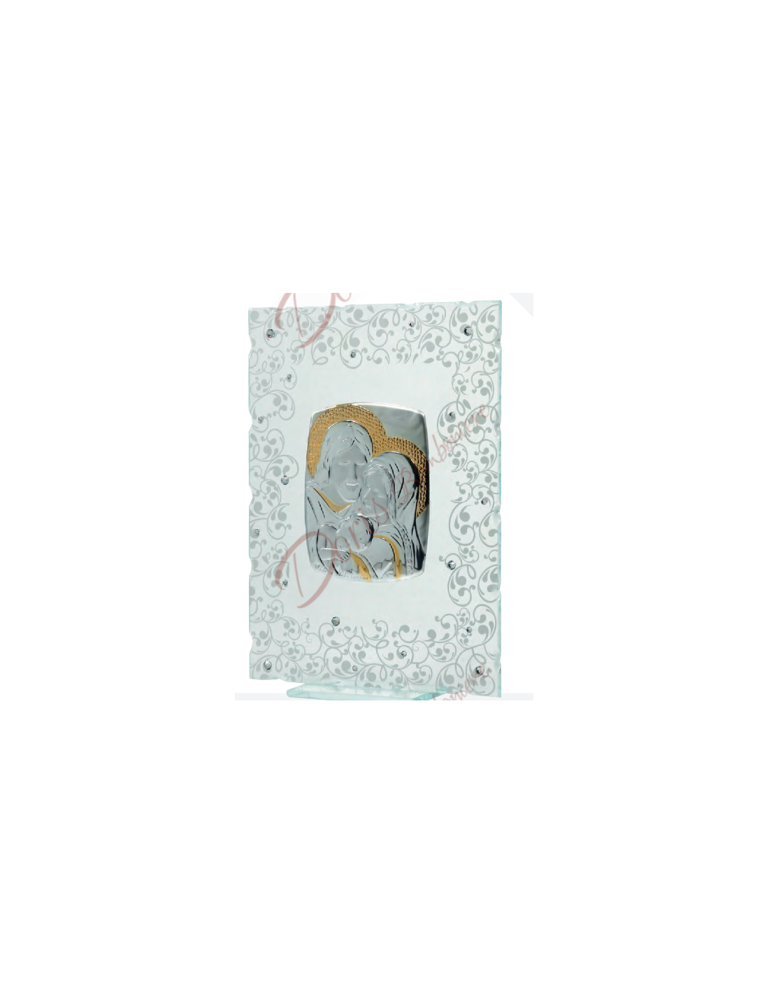 Quadretto vetro con strass applicazione sacra a scelta cm 7.5x10