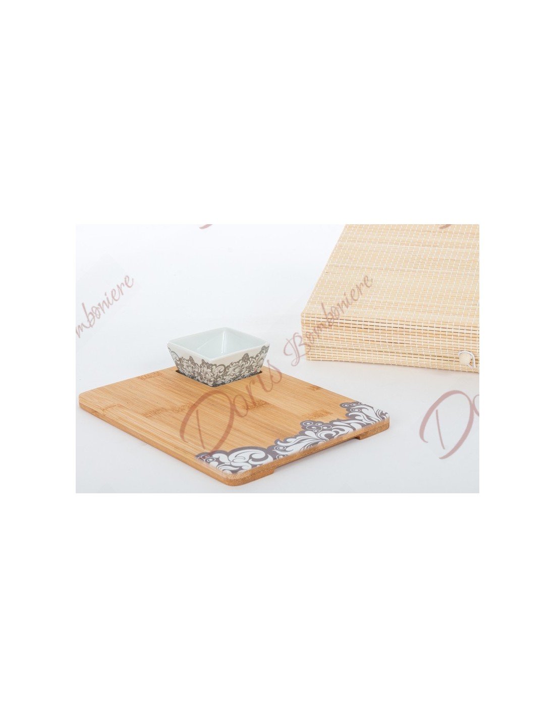 decorata su base in legno stampato grigio e bianco , scatola regalo in bambù
