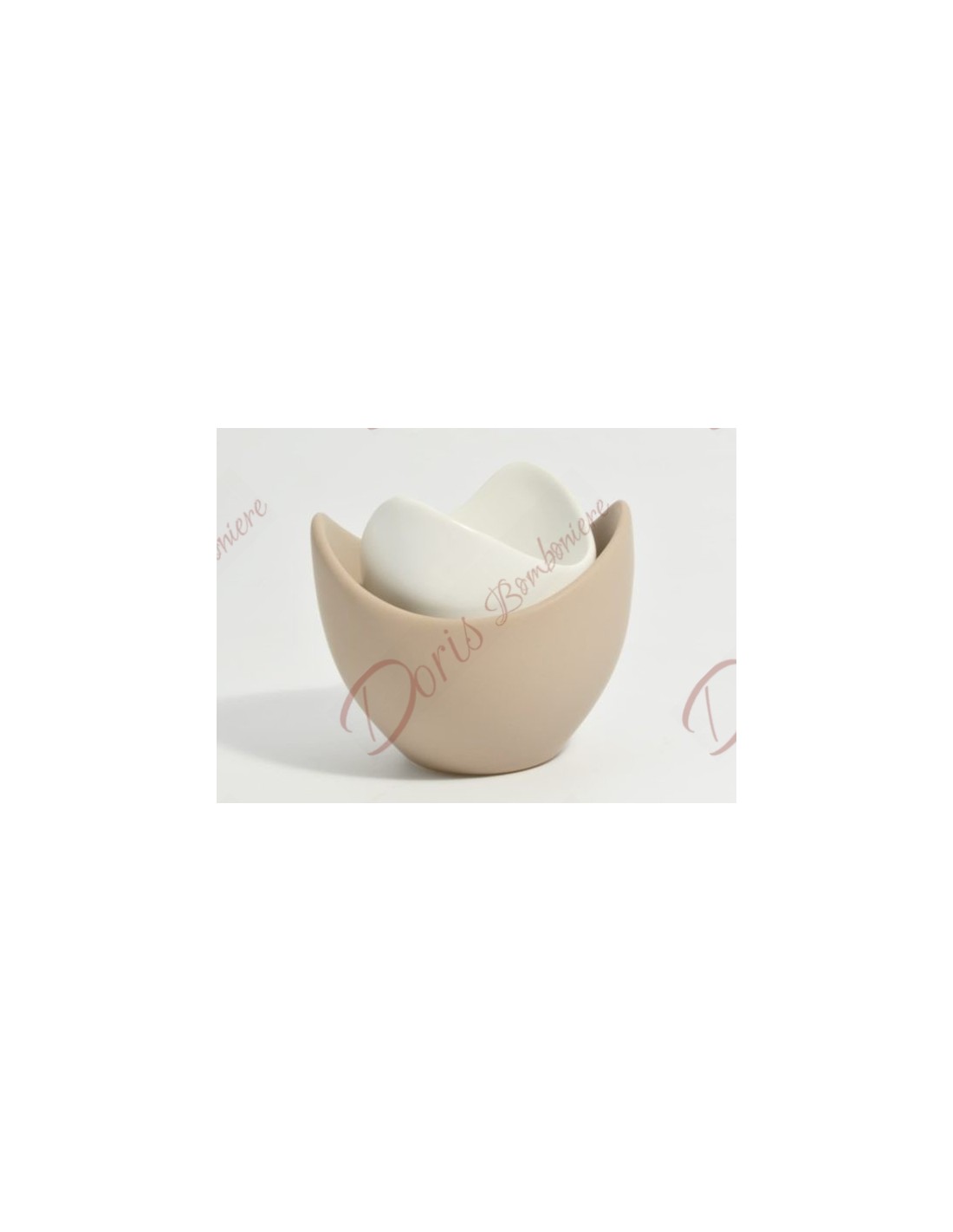 Bomboniera Antipastiera a due ciotole in porcellana bicolore bianco e tortora