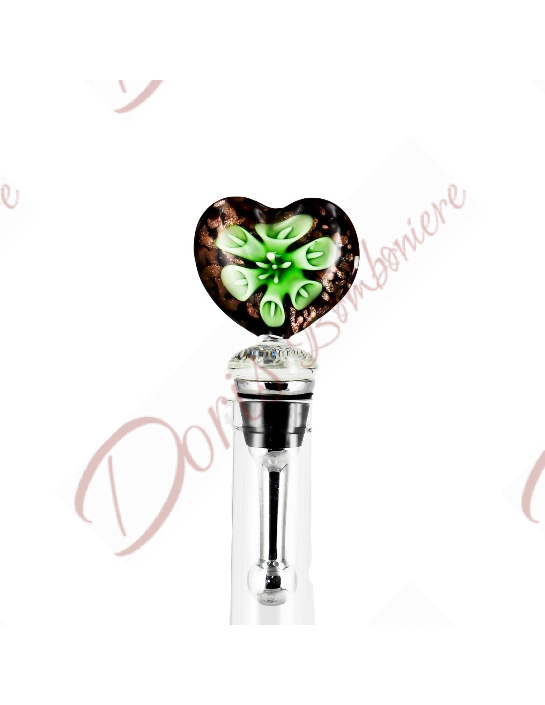 Bomboniera utile tappo per bottiglia con cuore in vetro murano