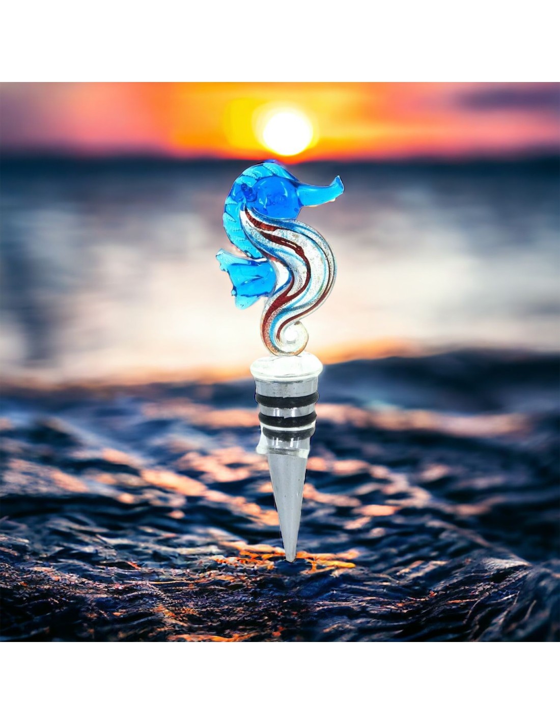 Ogni tappo per bottiglia che offriamo è una piccola opera d'arte a sé stante. Realizzato a mano dai talentuosi maestri vetrai di Murano, ogni pezzo cattura la bellezza e la magia del mare in un modo unico. I cavallucci marini, simboli di grazia e mistero, sono finemente lavorati nel vetro, creando un dettaglio straordinario che rende questi tappi dei veri gioielli.