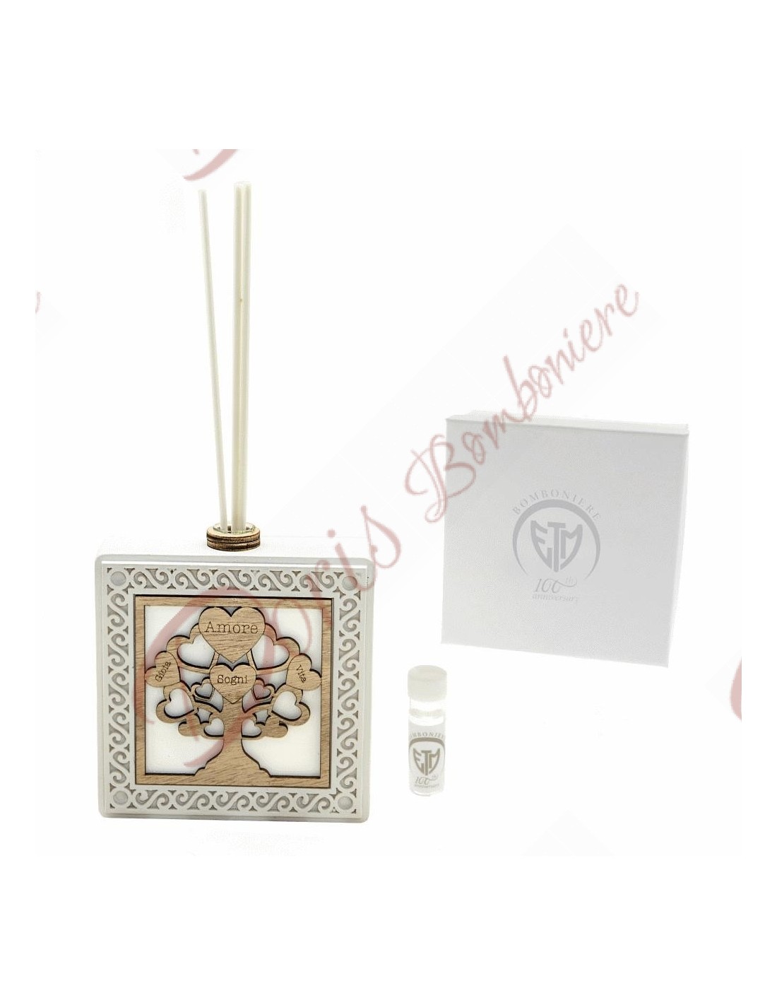 Bomboniere albero della vita utile profumatore con scatola e fragranza cm 11