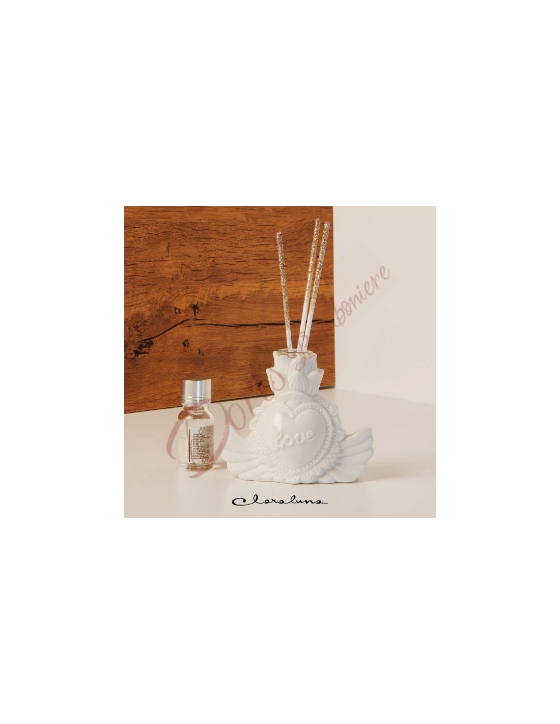Bomboniere Claraluna 2023 nuova collezione profumatore cuore con ali colore bianco in ceramica