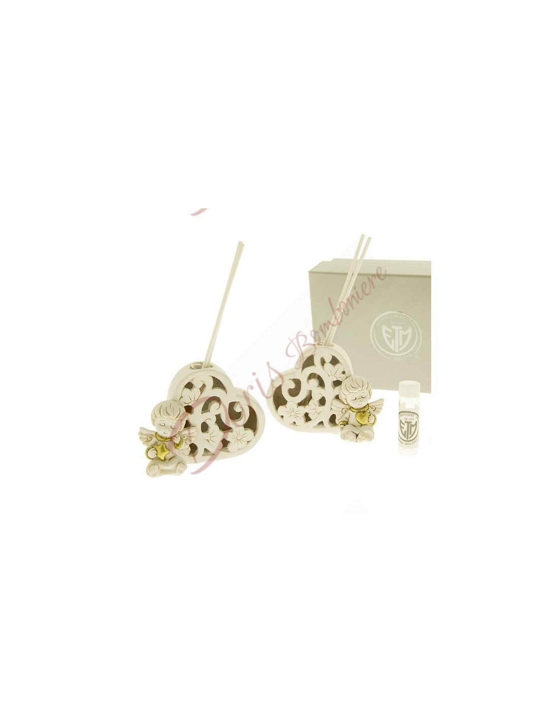 Bomboniere utili battesimo bimba o bimbo angelioletto profumatore a forma di cuore con scatola e fragranza cm 9