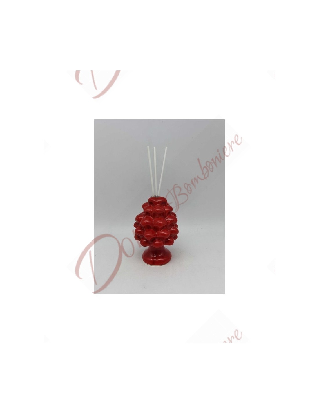 Bomboniere profumatore pigna in ceramica colore rosso con scatola altazza 13 cm