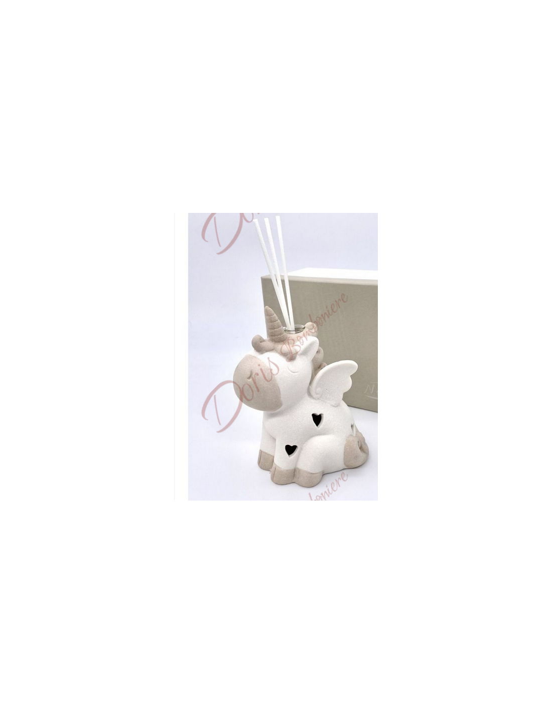 Bomboniere unicorno profumatore in ceramica con scatola e fragranza con led
