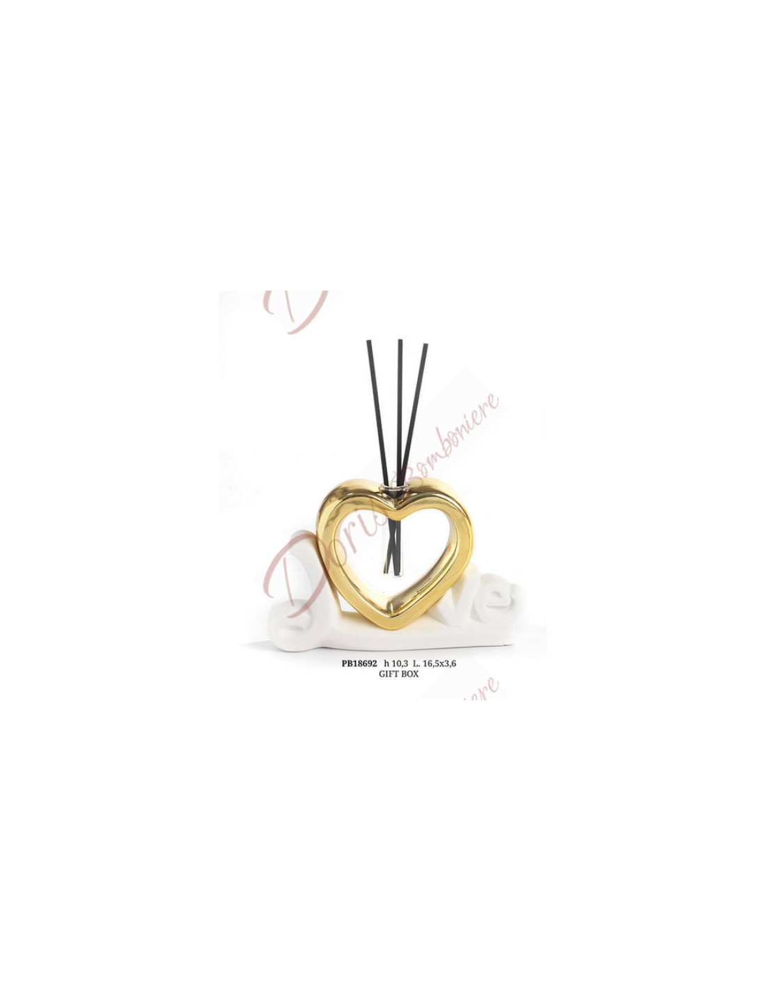 DIFFUSORE CUORE DOPPIO GRANDE BIANIANCO E MARRONE CON FOGLIE