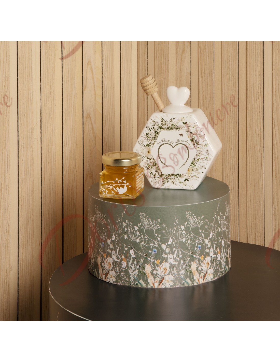 Il nostro porta miele Primavera è il regalo ideale per chi desidera donare una bomboniera alimentare completa e di qualità. Oltre al miele di prima scelta, questa bomboniera è fornita con una bellissima scatola regalo, pronta per essere presentata agli invitati con eleganza e raffinatezza.