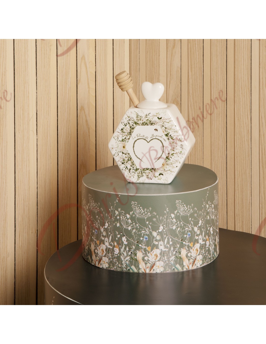 Il nostro porta miele Primavera è il regalo ideale per chi desidera donare una bomboniera alimentare completa e di qualità. Oltre al portamiele di prima scelta, questa bomboniera è fornita con una bellissima scatola regalo, pronta per essere presentata agli invitati con eleganza e raffinatezza.